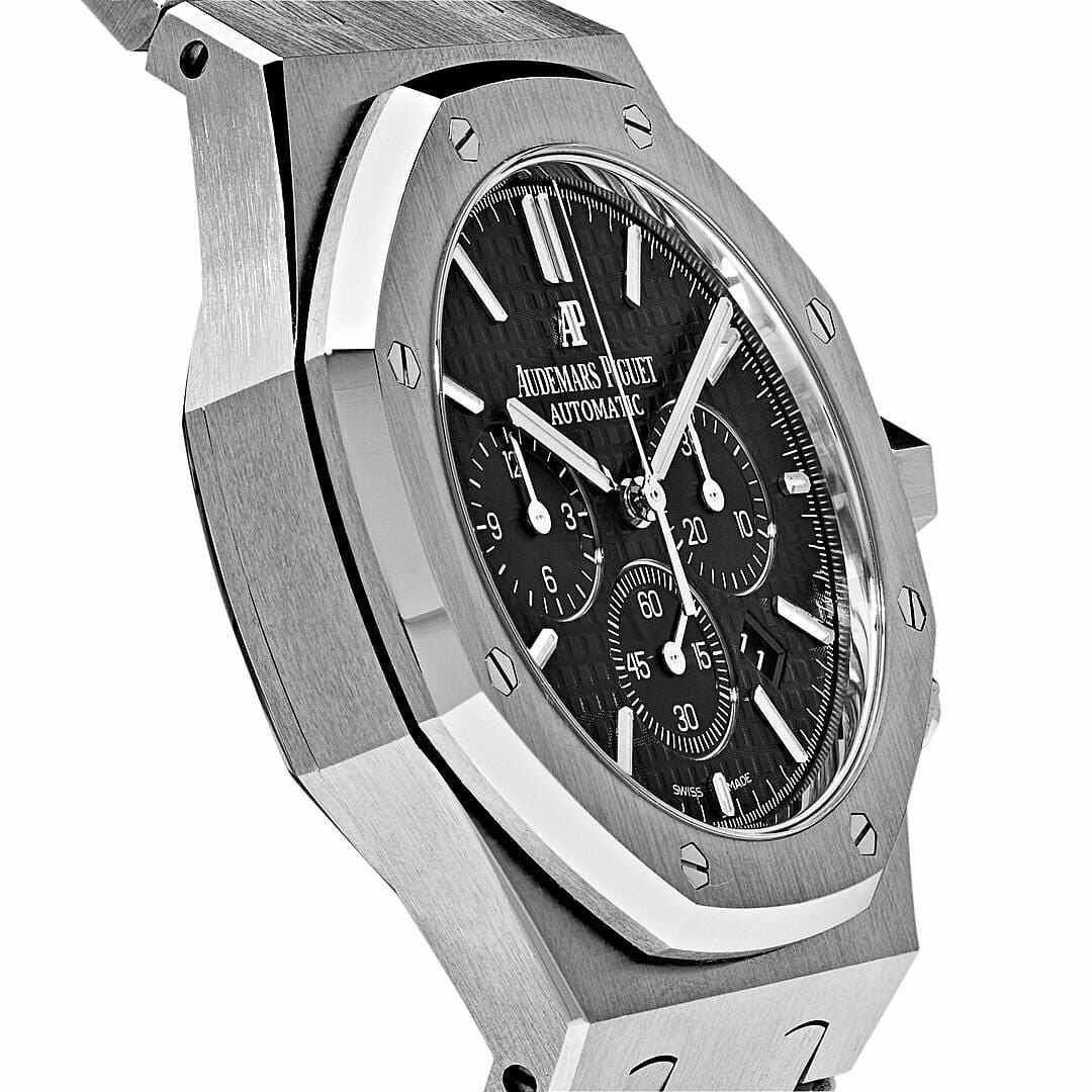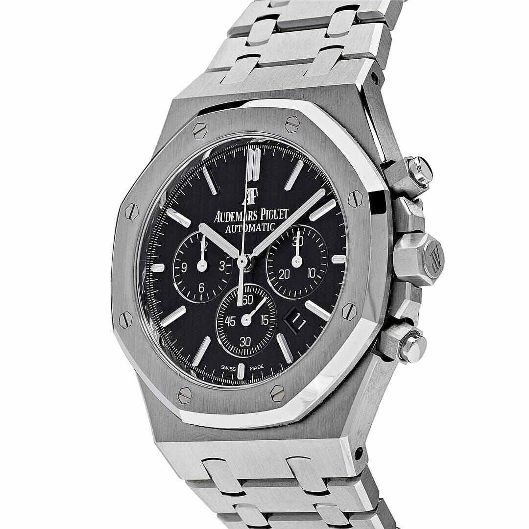 The Audemars Piguet Royal Oak Chronograph is a stunning watch that combines form and function. The 41mm case is crafted from stainless steel and features a chronograph complication. The bracelet is also made from stainless steel. giving the watch a sleek and sophisticated look.