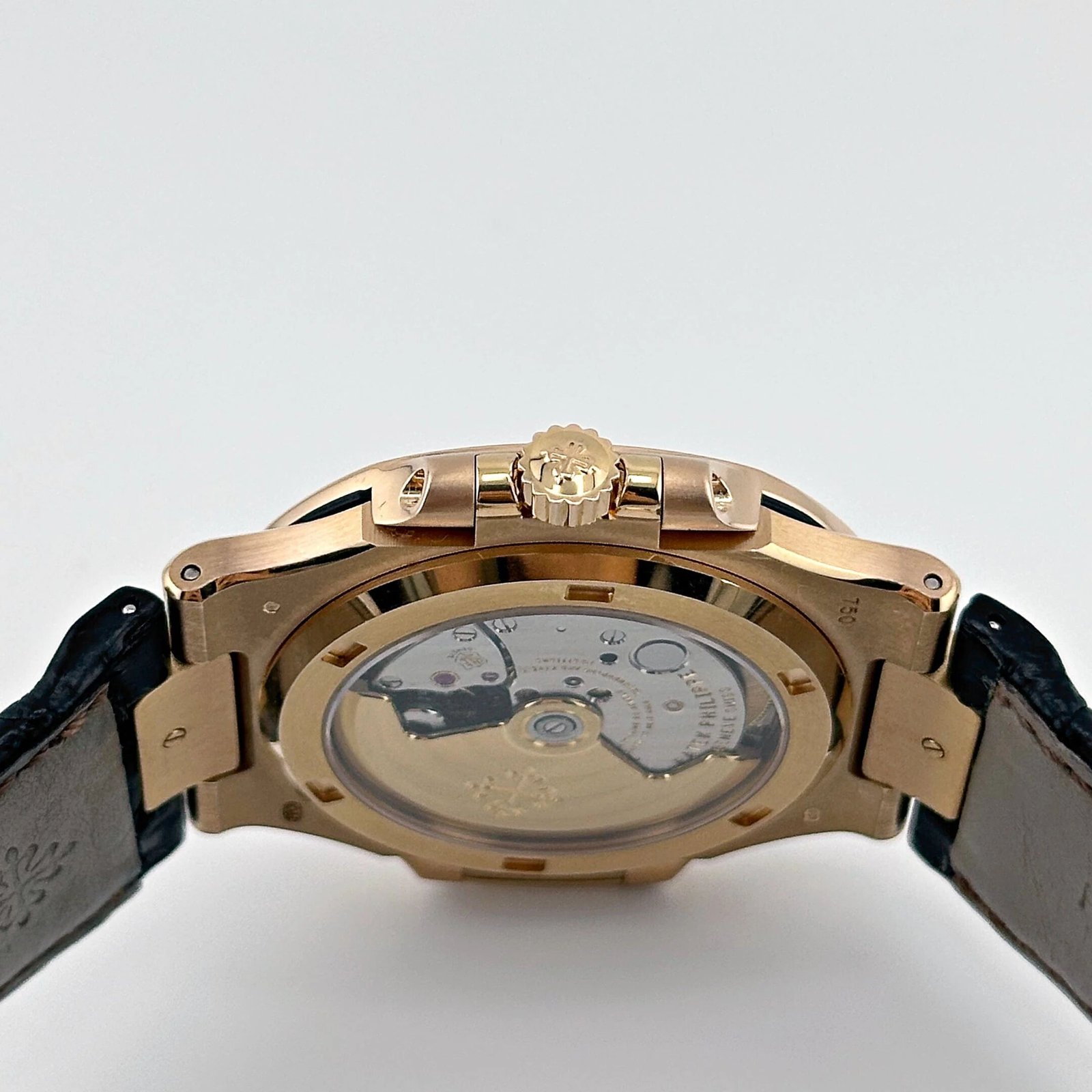 The warm brown sunburst dial. transitioning to darker tones at the edges. adds depth and elegance to the design. Subtle horizontal embossing and gold-applied hour markers with luminescent coating maintain the Nautilus’s signature style. Rare and highly coveted. the 5711R-001 embodies the perfect balance of sportiness and refinement. making it a centerpiece for discerning collectors. Its rose gold construction and harmonious design cement its status as a modern classic in Patek Philippe’s storied lineup.