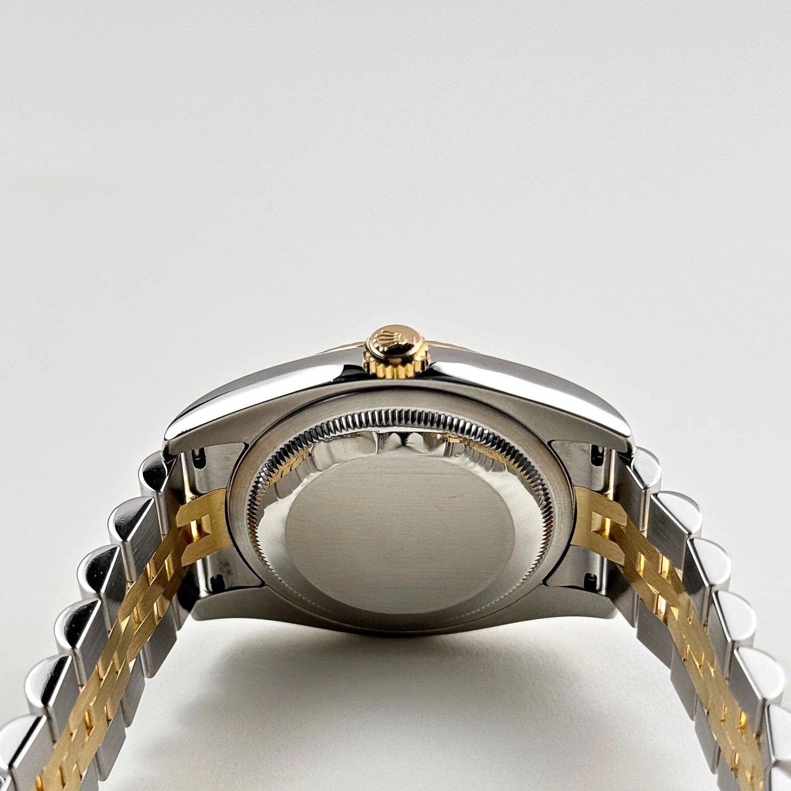 The Rolex Datejust 116233 is a timeless classic that seamlessly blends luxury and versatility. Crafted in a two-tone combination of 18k yellow gold and stainless steel. the 36mm case is paired with the iconic fluted yellow gold bezel. exuding a refined and elegant aesthetic.