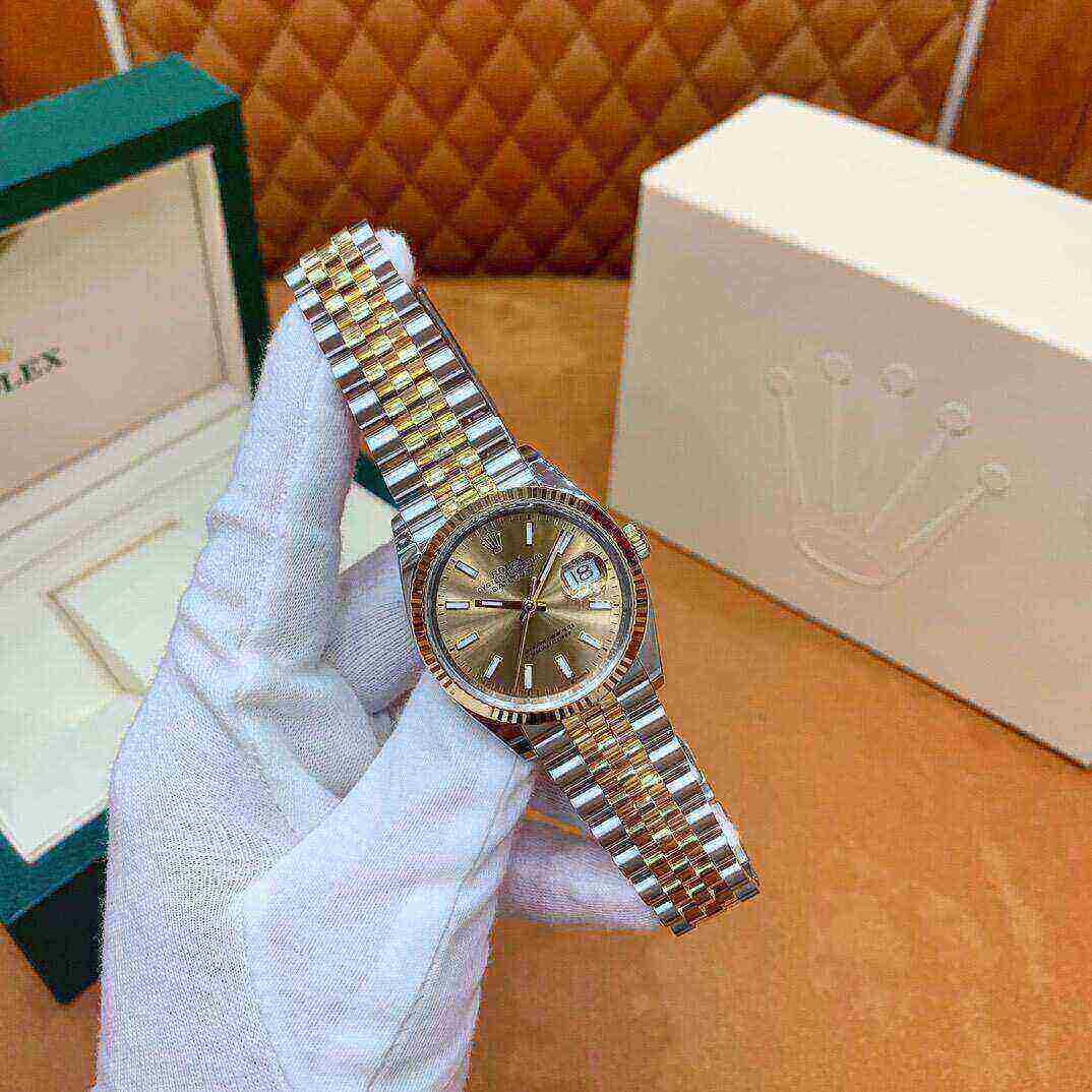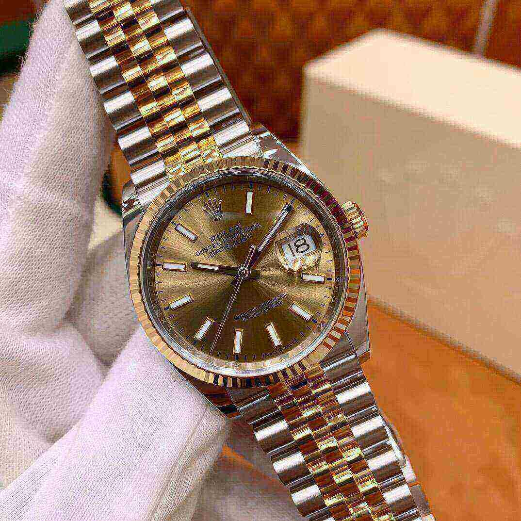The Rolex Datejust is designed with a 36mm stainless steel case, highlighted by the signature 18k yellow gold fluted bezel, and styled on a two-toned oyster bracelet. The champagne dial hosts a date feature at 3 o’clock. The Rolex Datejust is a classic model and the next addition to your collection.