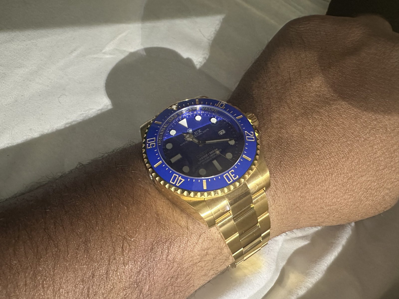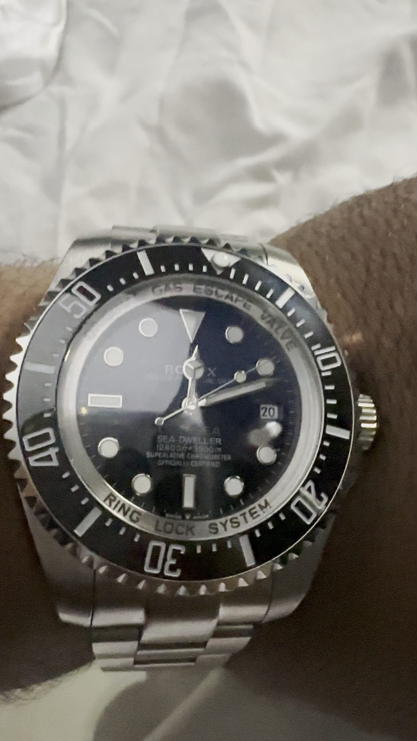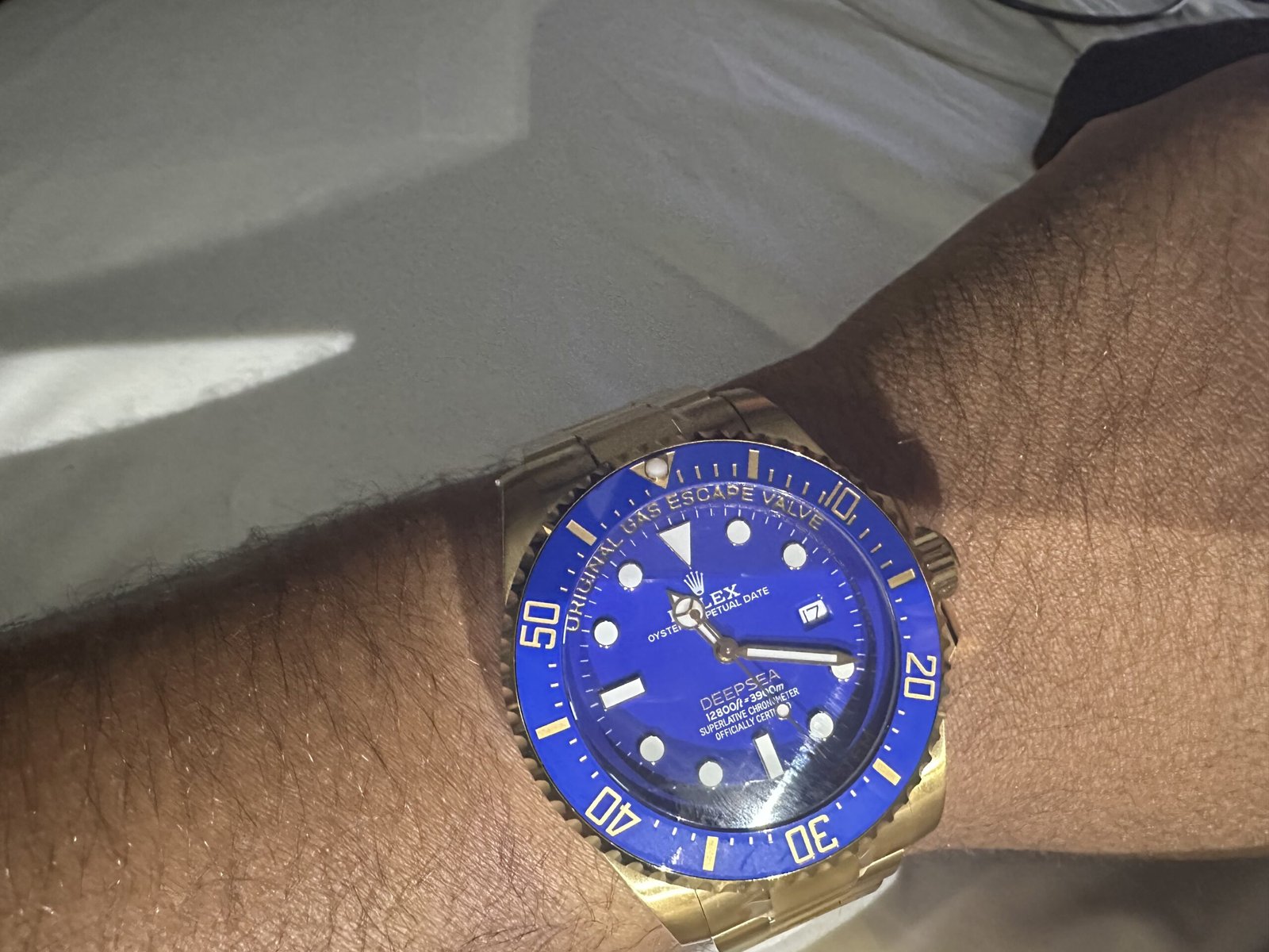 So good it's a replica. I would really want a 40mm Submariner with this kind of dial. I'll just have to go with a regular blue dial Submariner. This Deepsea will be gifted probably!