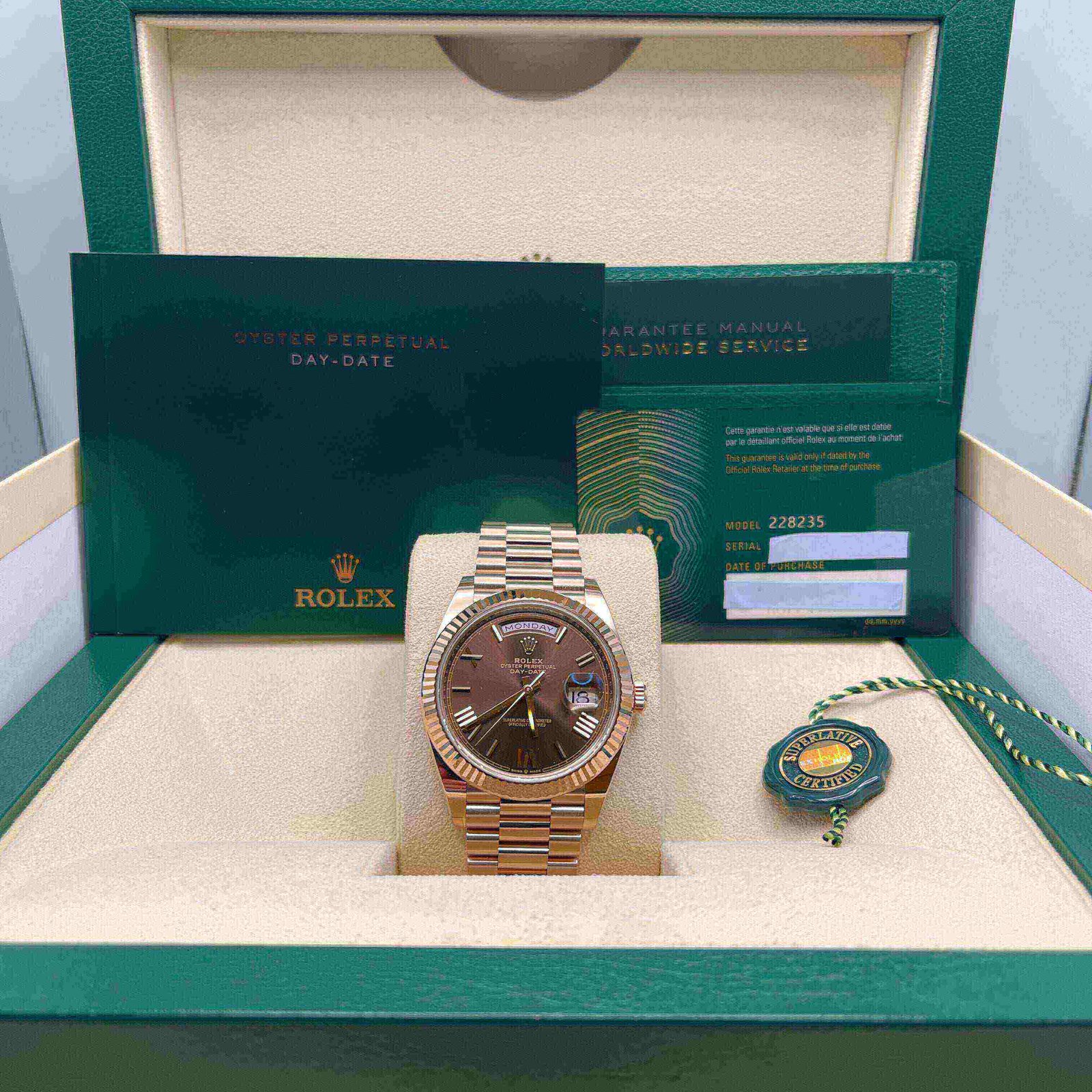 Rolex Day-Date 228235 Rose Gold Chocolate Roman Dial