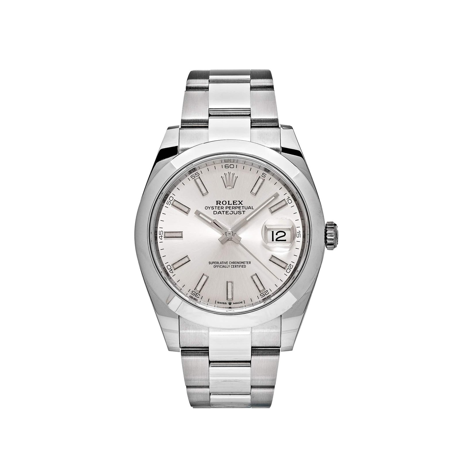 The Rolex Datejust is crafted with a 41mm stainless steel case. highlighted with a classic steel smooth bezel. The silver dial is protected by scratch-resistant Sapphire crystal and hosts luminous stick hour markers and a date display at 3 o’clock. On the wrist. the stainless steel oyster bracelet is a true beauty.